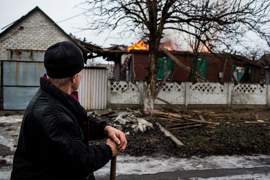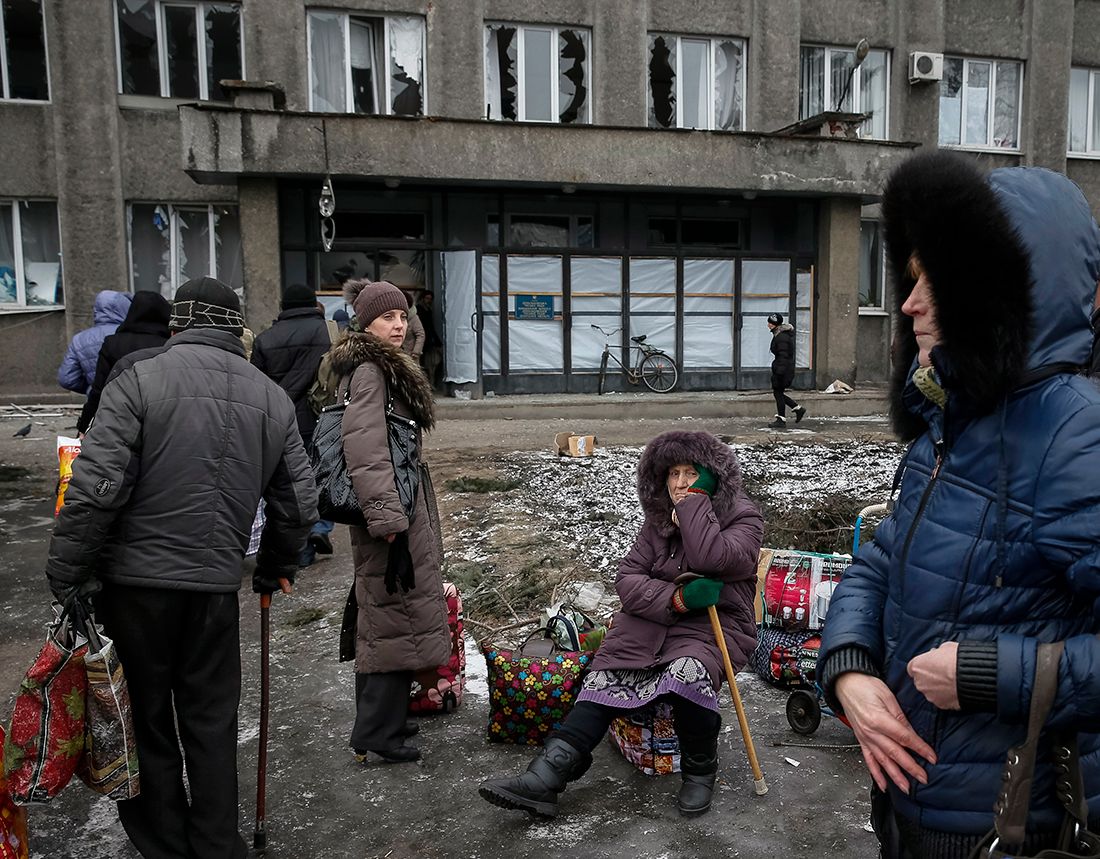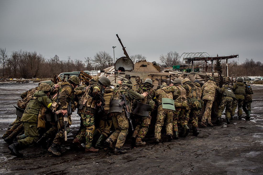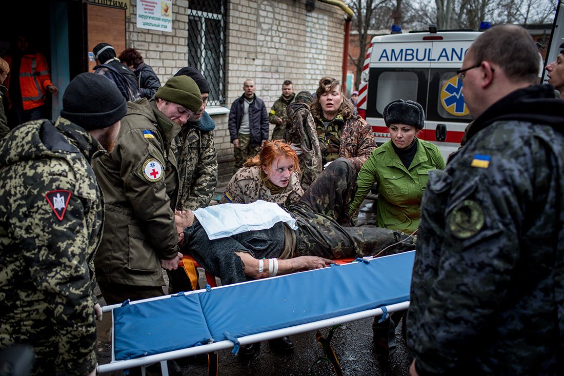 Photo: Petr Shelomovskiy / Demotix / Corbis / All Over Press Destroyed buidling in Debaltseve, 2 February 2015.Photo: Petr Shelomovskiy / Demotix / Corbis / All Over Press Private house in Debaltseve caught fire after shelling. Mobile phone network is down so it’s not possible to call a fire brigade.Photo: Maksim Levin / Reuters / Scanpix Local residents gather inside a bomb shelter in Debaltseve, January 30, 2015.Photo: Sergey Polezhaka / Reuters / Scanpix A woman walks to cook on a fire outside her house, February 3, 2015.Photo: Sergey Polezhaka / Reuters / Scanpix A man walks past the damaged city council building, February 3, 2015.Photo: Petr Shelomovskiy / Demotix / Corbis / All Over Press Locals have to melt snow on open fire as there is no electricity, gas or water. 30 January 2015.Photo: Petr Shelomovskiy / Demotix / Corbis / All Over Press Water is distributed in Debaltsevo Ukraine as locals experience a total blackout and no running water.Photo: Anastasia Vlasova / EPA / LETA Local citizens receive free bread, 30 January 2015.Photo: Petr Shelomovskiy / Demotix / Corbis / All Over Press A group of children and a man await to be evacuated from a pickup point in the disputed town. 31 January 2015.Photo: Manu Brabo / AFP / Scanpix A Ukrainian army soldier holds a Ukrainian kid while evacuating citizens from Debaltseve, February 3, 2015.Photo: Gleb Garanich / Reuters / Scanpix A woman and a child look through a bus window before leaving as people flee the conflict in Debaltseve, February 5, 2015.Photo: Gleb Garanich / Reuters / Scanpix Local residents wait for a bus to flee the conflict, February 5, 2015.Photo: Petr Shelomovskiy / Demotix / Corbis / All Over Press A man jumps on a large lorry carrying evacuees fleeing from the increasing battles between pro-Russian separatists and the Ukrainian army, 31 January 2015.Photo: Manu Brabo / AFP / Scanpix An elderly Ukrainian man is helped by a Ukrainian Army soldier and a citizen during a evacuation of civilians, February 3, 2015.Photo: Anastasia Vlasova / EPA / LETA A local man waits near of the checkpoint with his cattle to pass as he leaves his home, 03 February 2015.Photo: Petr Shelomovskiy / Demotix / Corbis / All Over Press A checkpoint guard greets an Ukrainian Army convoy en route to Debaltsevo, 31 January 2015.Photo: Manu Brabo / AFP / Scanpix A Ukrainian soldier is seen atop of a Ukrainian armored vehicle while resupplying their battalion at the gate of Debaltseve, 3 February, 2015.Photo: Petr Shelomovskiy / Demotix / Corbis / All Over Press Ukrainian soldiers stand by a map of the Donetsk region discussing the tactical situation around Debaltsevo.Photo: Maksim Levin / Reuters / Scanpix Members of the Ukrainian armed forces gather inside a school building in Debaltseve, January 30, 2015.Photo: Petr Shelomovskiy / Demotix / Corbis / All Over Press Ukrainian soldiers try to push-start a broken APC at a military checkpoint.Photo: Petr Shelomovskiy / Demotix / Corbis / All Over Press Medics carry a wounded Ukrainian soldier inside Artemovsk hospital.Photo: Manu Brabo / AFP / Scanpix A Ukrainian soldier stands watch on a road between Debaltseve and the Ukrainian-controlled town of Artemovsk.