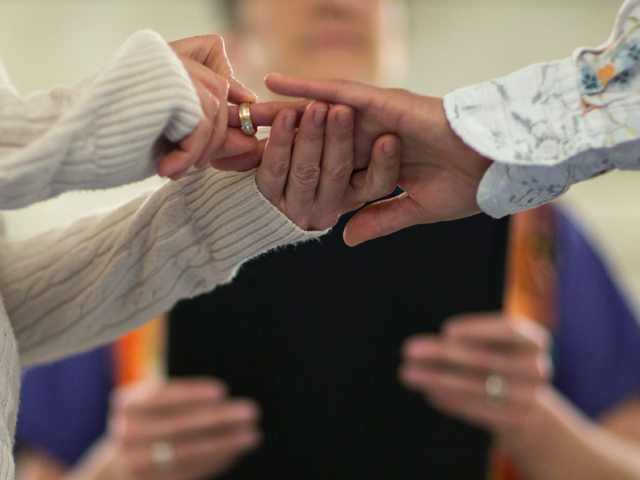 "Мы хотели стать частью истории", - сказала 40-летняя Ди Буш, которая получила одно из первых разрешений на брак, выданных однополым парам в Бирмингеме Она и ее партнерша, Лора Буш, быстро поженились в парке возле здания суда.