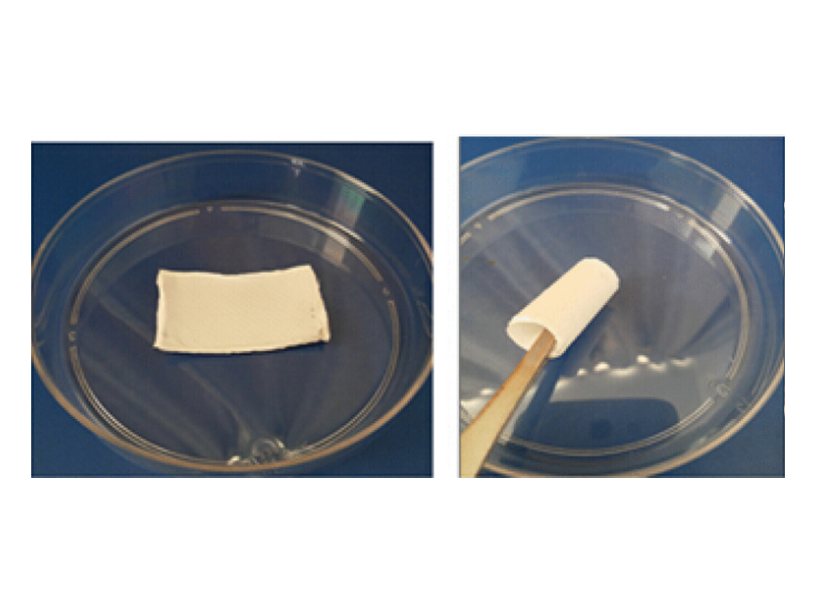 Поливиниловый спирт придает конструкции прочность и гибкость. Итоговая конструкция изготавливалась из двух полимеров методом, который называется «электропрядение». Манипулируя электрическим зарядом, из полимеров удается создавать нужную структуру.