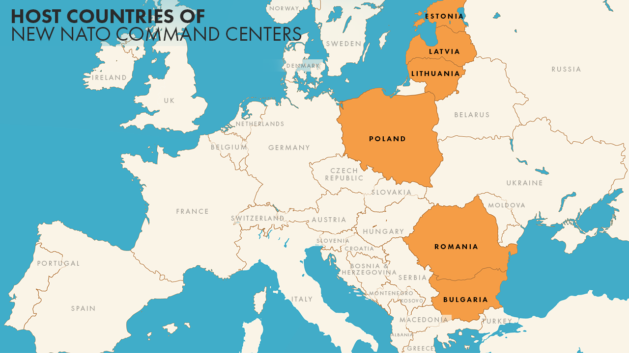 В начале февраля министры обороны стран НАТО приняли решение о создании шести командно-контрольных центров в странах Балтии, Польше, Румынии и Болгарии. Эти локальные штабы сформируют инфраструктуру развертывания "Острия копья". Контингент каждого из них будет состоять из 40 человек – военнослужащих, экспертов, техподдержки, специалистов по коммуникациям и прочих: одна половина из принимающей страны, другая – многонациональная.