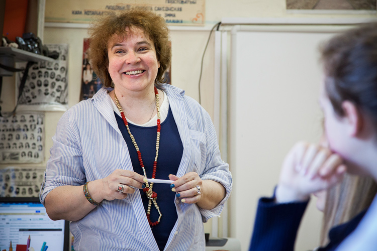 У меня папа шесть лет работал учителем, обе бабушки у меня учителя, но я совершенно не думала следовать их примеру. Однажды к нам в гости пришла женщина, которую мистическим образом послала судьба, и спросила меня: «А ты что делаешь?» Я говорю: «Учусь в университете, окончила 4-й курс». — «В школу идти работать, конечно, не хочешь?» И в этот момент я подумала: «А почему бы и нет?» До этого вообще не задумывалась: хочу — не хочу. Это был 1981 год. Через полгода она мне позвонила и сказала, что в 45-й школе (теперь гимназия имени Мильграма) заболел учитель и нужна замена. Я пошла заменять. Два месяца заменяла, а потом, после окончания университета, они меня позвали работать, и мне очень понравилось. И с тех пор продолжает нравиться.