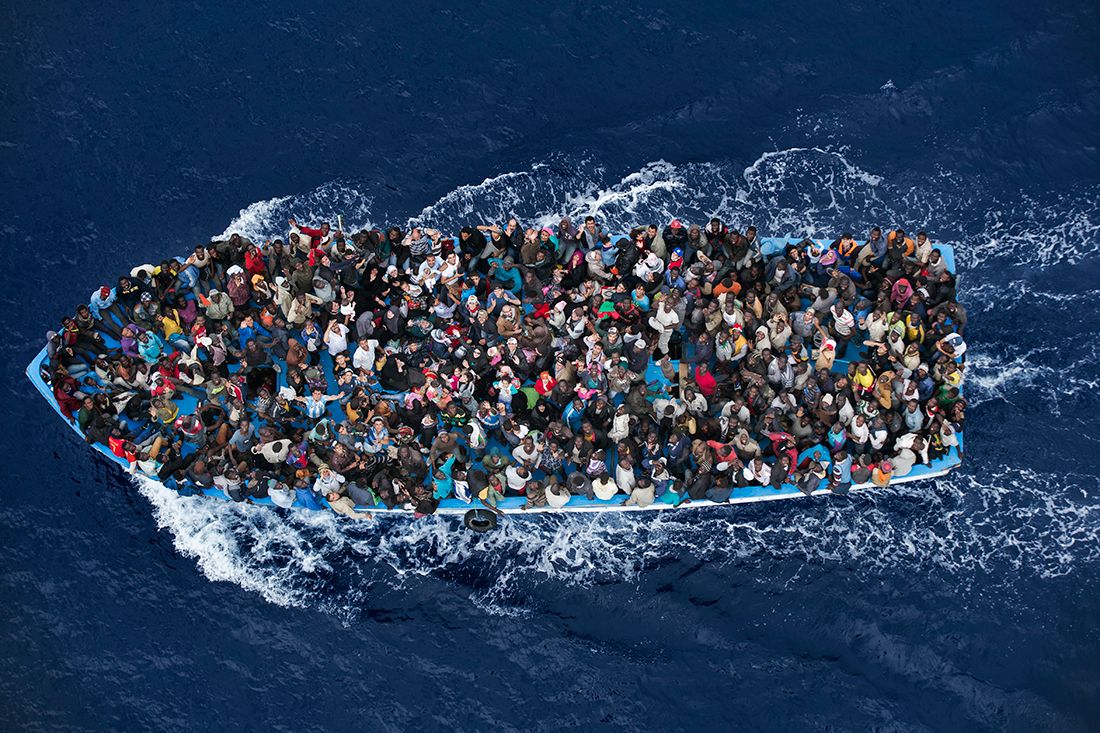 Мигранты из Ливии пытаются добраться до Италии, июнь 2014 года