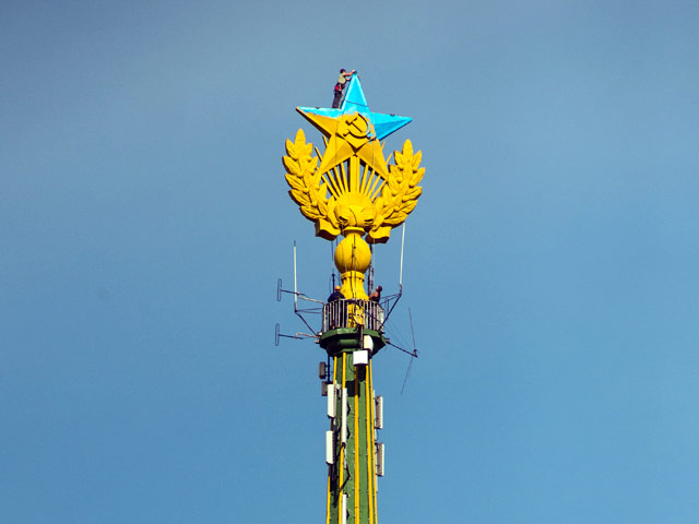 Ишутин рассказал, что Mustang захотел сфотографироваться с украинским флагом на фоне высотки, а покрасить звезду предложила Ангела. Кирилл Ишутин настаивает на том, что именно Подрезов и Ангела были вместе с Мустангом на вершине высотки, когда он красил звезду. Сам Подрезов отрицал свое участие в покраске звезды: по его словам, он действительно был в ту ночь в здании на Котельничечкой, но не добрался до верха, потому что испугался прыгать с карниза на карниз.