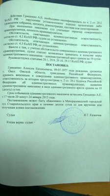 Говорят, 27 человек понесли наказание за народный сход, кто-то сутками в изоляторе, кто-то — штрафами. Нас в тот день задержали четверых, всем дали по десять суток. Судья сказал, что дает по максимуму. Я написал жалобу, мне сообщили, что жалобу приняли и что будет пересмотр, но о результатах пересмотра мне до сих пор никто не сообщил (жалоба была рассмотрена в Ставропольском краевом суде, решение Минераловодского городского суда было оставлено без изменений — ОВД-Инфо). Знаю, что женщине 1941 года рождения дали штраф в 10 тысяч, ее мужу пенсионеру 84 лет тоже дали штраф в 10 тысяч. Но это было уже двое или трое суток спустя. Они же не могут всех сразу задержать — изолятор не справится со всеми, койкомест не хватит.