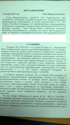 ОВД-Инфо публикует рассказ Алексея Грищенко — активиста общественного движения «Вече Минеральных Вод», задержанного на народном сходе 24 января и приговоренного сначала к 10 суткам ареста, а потом к аресту еще на сутки.