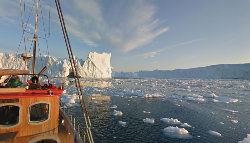В частности, панорамы были сняты в городе Илулиссат, расположенном в устье одноименного фьорда на западе Гренландии. С лодки Google сфотографировал и айсберги, проплывающие вдоль побережья .