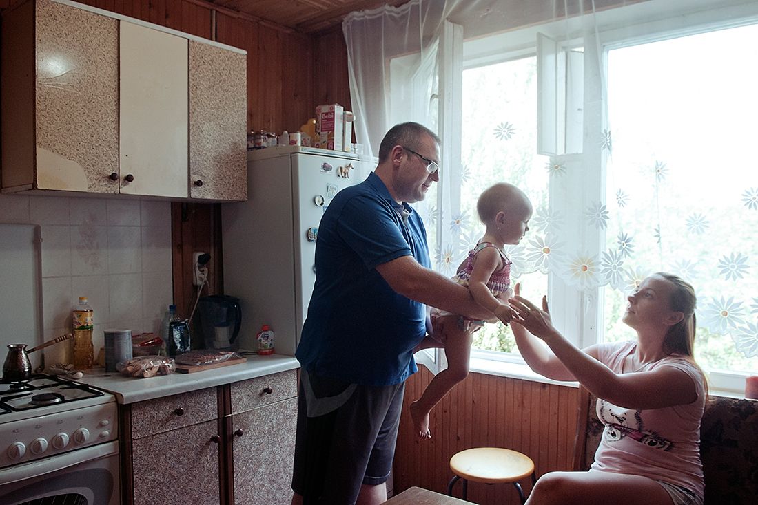 Vladimir was born in Moscow, and Eugenia is from Kharkov. They met each other in 2006 while visiting their grandmothers in a village in the Kursk region. Three years later, after weathering the long-distance relationship, Eugenia moved to Moscow, where she and Vladimir now live happily together with their daughter, Arisha.
