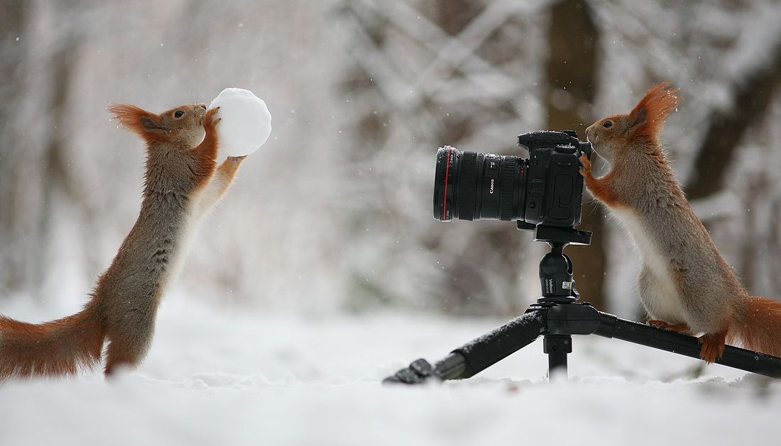 Российский фотограф Вадим Трунов сфотографировал белок, устроивших «фотосессию» со снежным шариком. В кадр также попало то, как белки играют в «волейбол» шишкой и «лепят» снеговика.
