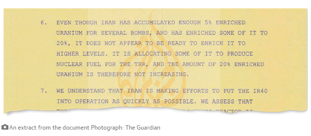 Разведка Израиля не разделяла мнение премьер-министра Биньямина Нетаньяху в 2012 году, что Иран обладает достаточным количеством оружейного урана и находится в нескольких месяцах от создания атомной бомбы. Это следует из преданных достоянию гласности секретных телеграмм "Моссад".