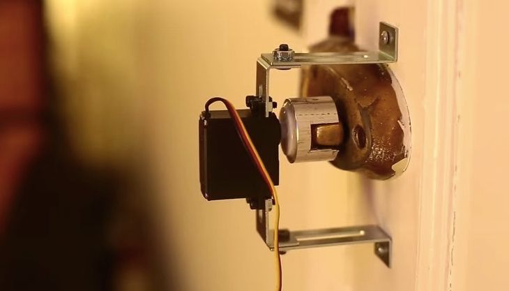 Фраза запускает на часах приложение, которое посылает команду микроконтроллеру Arduino, закрепленному на двери. Последний, в свою очередь, активирует сервопривод на замке, открывая таким образом доступ в комнату.