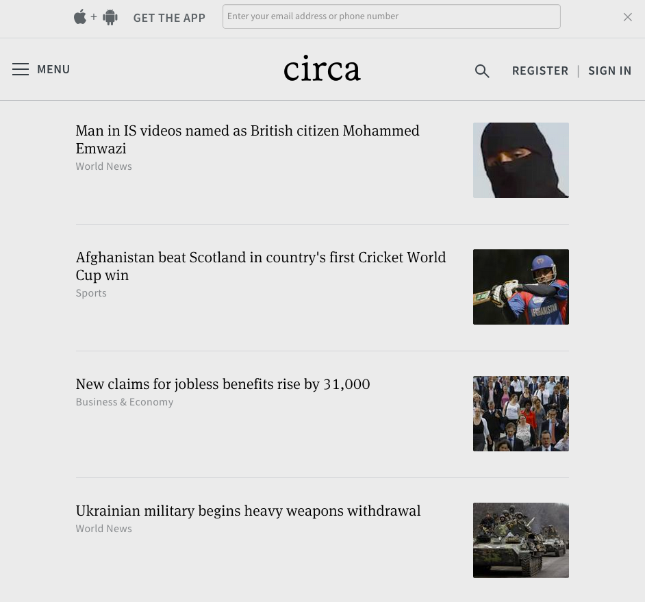 Новостное приложение Circa запустило сайт. Теперь все новости, написанные для мобильных платформ, доступны в вебе не только по прямым ссылкам.