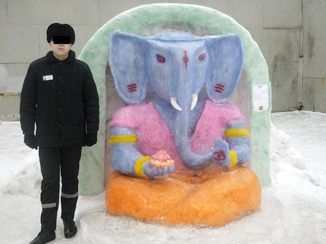 Произошло это в ходе творческого соревнования среди обитателей исправительного учреждения. Как сообщила пресс-служба УФСИН по региону, "в локальном участке отряда N12 исправительной колонии N5 проведено мероприятие, направленное на полезную занятость осужденных, а именно "Конкурс среди осужденных по изготовлению фигур из снега". В отряде была изготовлена фигура из снега индийского бога Ганеши, который является одним из наиболее известных и почитаемых во всем мире богов, символизирующий мудрость и благополучие. Большинство осужденных отряда N12 приняли активное участие в изготовлении данной фигуры".
