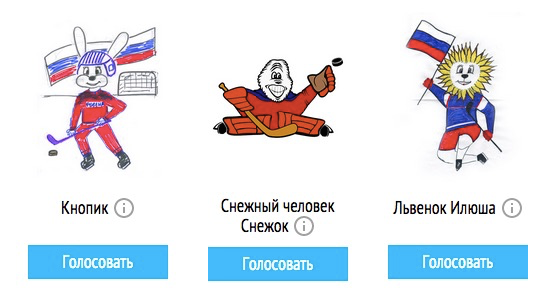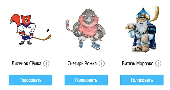 На сайте издания Чемпионат.com запустилось голосование за талисмана Чемпионата мира по хоккею, который пройдет в 2016 году в России. Конкурс официальный: всего на выбор выставлено 500 работ, проголосовать за них можно до 16 марта. У каждого пользователя есть 20 голосов, а в следующий этап пройдут 20 вариантов.