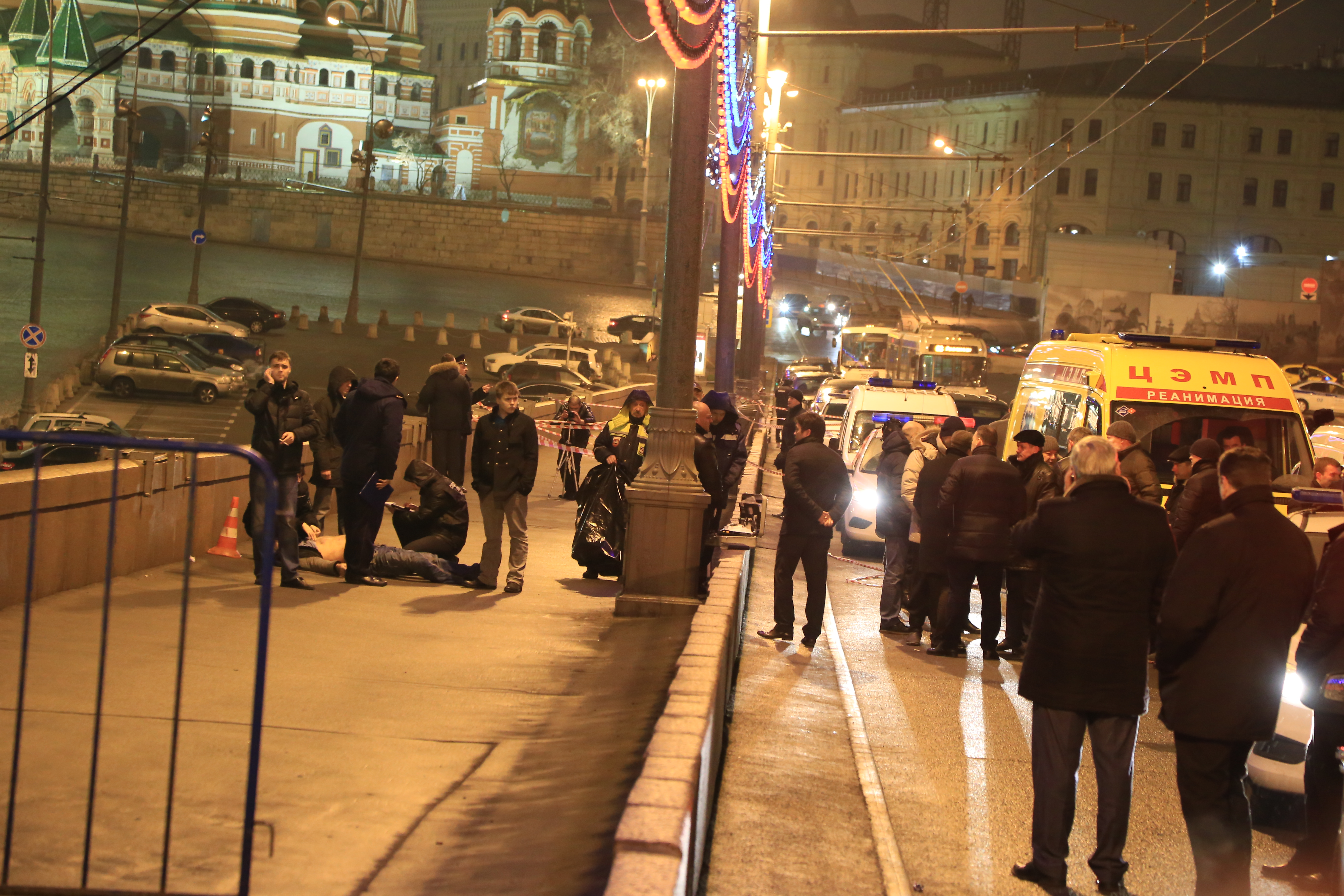 Смерть Немцова подтвердил руководитель московского отделения РПР-Парнас Илья Яшин. Преступление произошло на Васильевском спуске. По данным источника телеканала РЕН ТВ, в политика четырежды выстрелили из автомобиля белого цвета. От полученных ранений Немцов скончался.