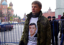 Следователь допросил Гончаренко прямо в ОВД "Китай-город", куда его доставили после задержания на траурном марше в центре Москвы.