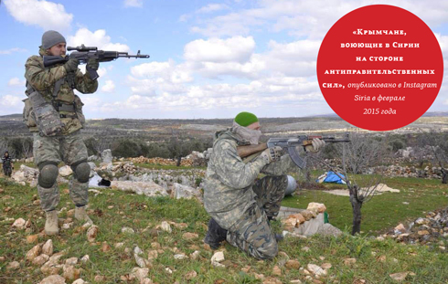 Боевики «Исламского государства» готовятся казнить 21 египетского христианина, кадр из видеоролика «ИГ», февраль 2015 годаКрым О том, что жители Крыма, исповедующие ислам, тайно выезжают в Сирию и воюют против правительственных сил, стало известно весной 2013 года, когда полуостров еще не подвергся аннексии со стороны России. Тогда в крымской прессе появились первые сообщения о погибших на сирийской войне крымчанах. Данные о возможном количестве крымских мусульман, присоединившихся после участия в сирийской гражданской войне к боевикам «Исламского государства», у всех ожидаемо разнятся. Руслан Саитвалиев, муфтий «Таврического муфтията», образованного после присоединения Крыма к России, утверждает, что в армии «ИГ» состоят около 500 выходцев из Крыма. В Духовном управлении мусульман Крыма (ДУМК) — старейшей и самой крупной мусульманской организации полуострова — эту цифру называют «сильным преувеличением».
