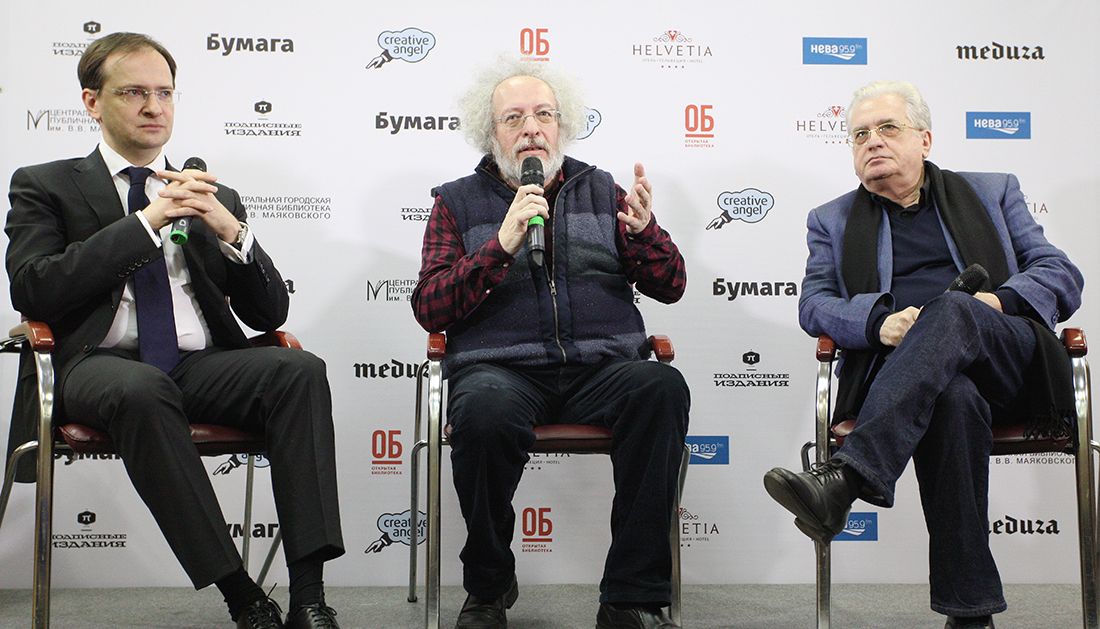 28 февраля в рамках проекта «Открытая библиотека» в Санкт-Петербурге состоялась очередная серия дискуссий. «Медуза» представляет полную расшифровку беседы директора Эрмитажа Михаила Пиотровского, министра культуры Владимира Мединского и главного редактора «Эха Москвы» Алексея Венедиктова. Тема дискуссии изначально была заявлена как «Русские сказки», но участники проекта говорили о многом другом, в том числе и об убийстве Бориса Немцова, произошедшем накануне.