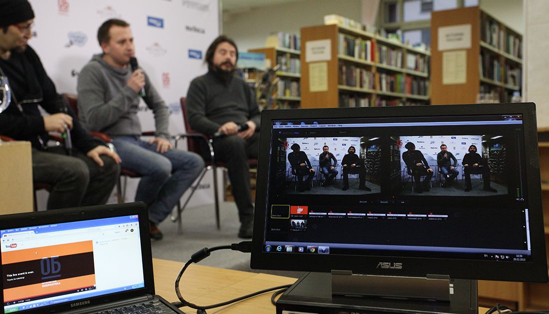 Николай Солодников, модератор: Дорогие друзья, мы продолжаем наши Февральские диалоги в «Открытой библиотеке». По традиции, прежде чем мы начнем диалог, хочу сказать несколько слов. Во-первых, благодарность Библиотеке Маяковского, которая нас в очередной раз принимает здесь — спасибо им большое. Снова хочу напомнить, что у нас есть друзья — благотворительный проект «Ночлежка», который помогает бездомным, которым очень непросто, и помочь им больше некому, кроме как нам с вами и самой «Ночлежки». В зале стоят ящики, около входа внизу, поэтому если есть возможность чем-то помочь людям, мы правда будем за это очень-очень благодарны, для нас это не менее важно, чем успешно проведенный диалог.