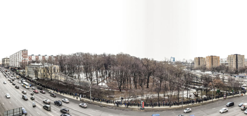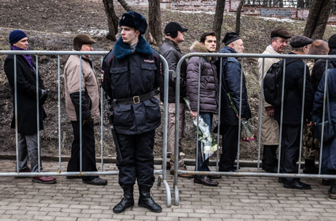 Поток людей у гроба не прекращался. В социальных сетях появились первые фотографии очереди — она растянулась вдоль Земляного вала почти до метро «Курская». Блогеры цитировали полицейских, которые жаловались на нехватку заградительных барьеров.