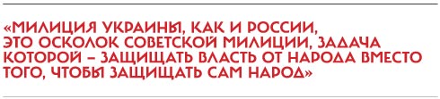 Три процента доверия Украинская милиция страдает тем же набором болезней, что и все постсоветские институты охраны порядка, только в более острой форме, чем большинство из них. «Милиция Украины, как и России, это осколок советской милиции, задача которой — защищать власть от народа вместо того, чтобы защищать сам народ», — говорит Геращенко.