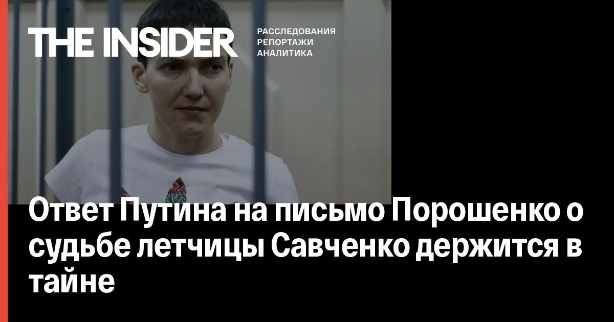 Владимир Путин отправил Петру Порошенко ответное письмо, касается судьбы украинской летчицы Надежды Савченко, находящейся в российском СИЗО, передает «ТАСС» со ссылкой на пресс-секретаря Путина Дмитрия Пескова. Содержание письма при этом остается неизвестным – по словам Пескова, этого требует тайна служебной переписки на высшем уровне.
