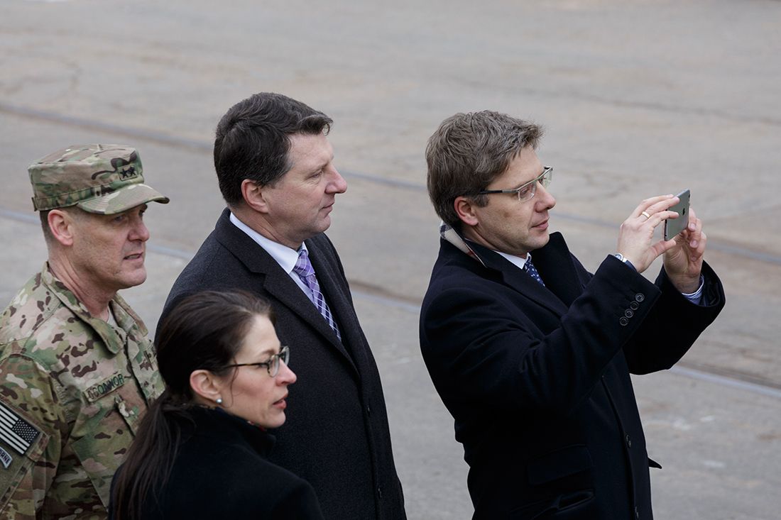 В порту американскую технику встречали министр обороны Латвии Раймондс Вейонис (в центре) и мэр Риги Нил Ушаков (справа, с телефоном). Ушаков признал, что членство Латвии в НАТО поддерживает не все русскоязычное население страны. Однако мэр заверил «Медузу», что в поддержке вооруженных сил Латвии все языковые группы населения едины. «Наши солдаты — это солдаты НАТО», — заключил Ушаков. Очевидно, эту точку зрения разделяют не все — по крайней мере, селфи мэра на фоне танка Abrams вызвало в соцсетях противоречивую реакцию.
