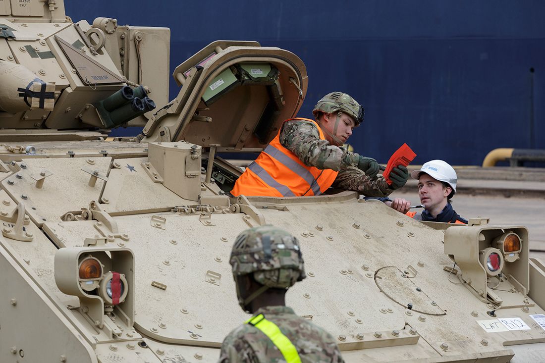 Разгружать технику — танки Abrams, БМП Bradley, бронированные автомобили и вспомогательные машины — будут двое суток. В итоге в Латвии останется шесть бронемашин: два танка, две БМП, и две бронемашины обеспечения. По столько же получат остальные страны, участвующие в операции «Атлантическая решимость».