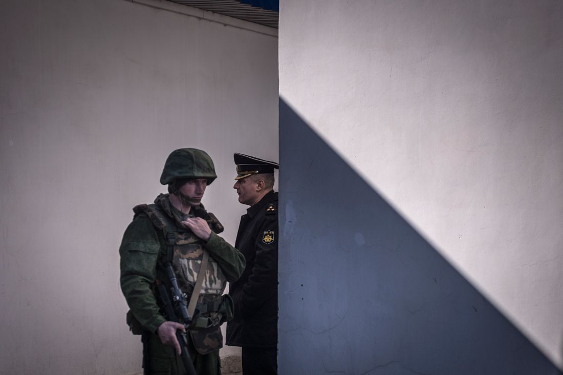 Сергей Пономарев — один из немногих российских фотографов, работавших в Крыму с конца февраля до середины марта 2014 года, то есть в дни, когда решалась судьба полуострова. Пономарев объехал основные города Крыма и везде снимал «зеленых человечков» — в масках, вооруженных по последнему слову техники. Его работа дает представление о том, как выглядели «вежливые люди» и даже о том, как они себя вели.