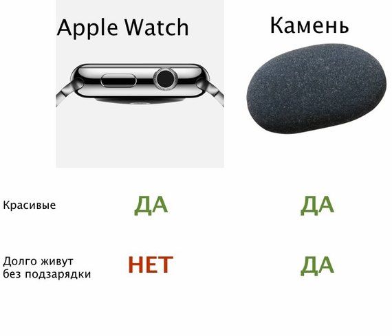 Подозреваю, что недолгое время жизни часов на одном заряде будет главным поводом для шуток о них. Нарисовал для таких как я картинку