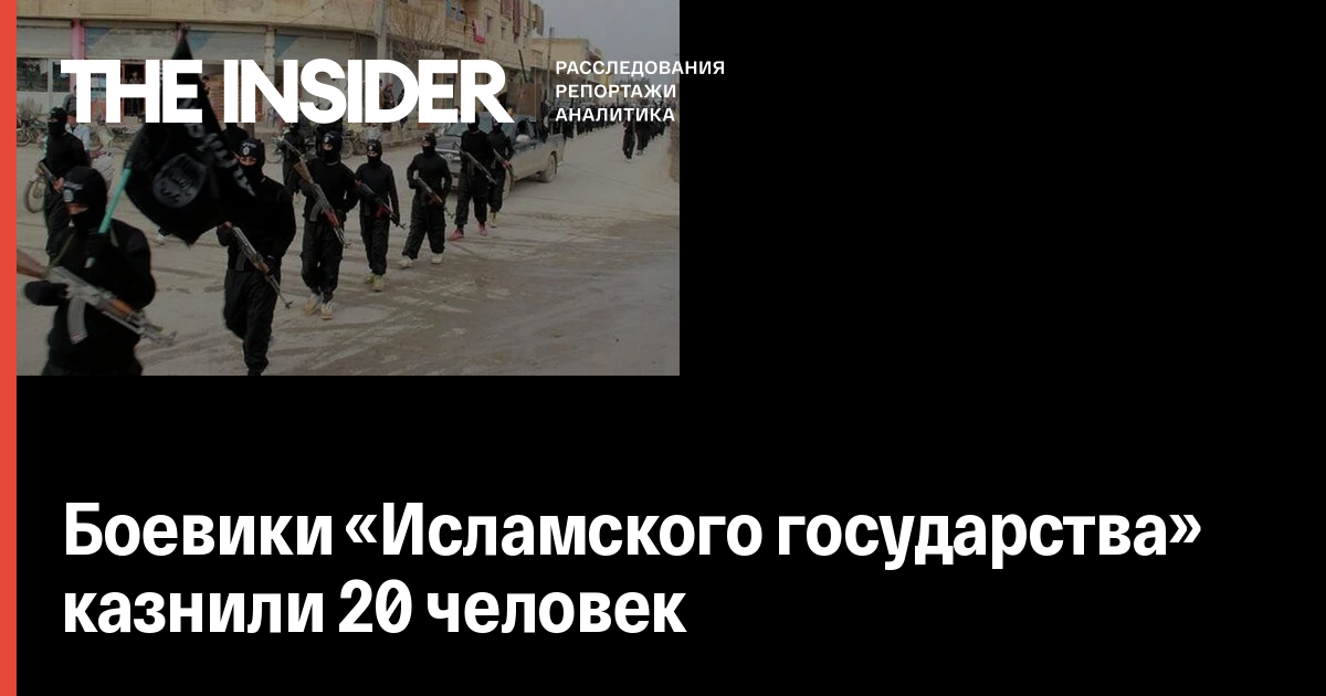 Фотографии расправы просочились в соцсети. На снимках видно, что казненные мужчины подвешены за ноги к столбам под большой вывеской, на которой изображен флаг ИГ. Подписи под фотографиями позволяют сделать вывод о том, что убитые были шиитами.