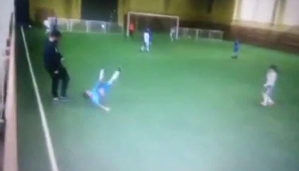 Video of a soccer coach in Russia kicking the legs out from under a small boy is causing a small sensation online. Trying to jump out of the way of the blow, the child flies into the air and lands on his back.