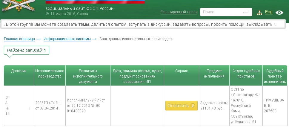 У него есть долг по исполнительному листу на ощутимую, но не огромную сумму. Долг всего один, вот выписка