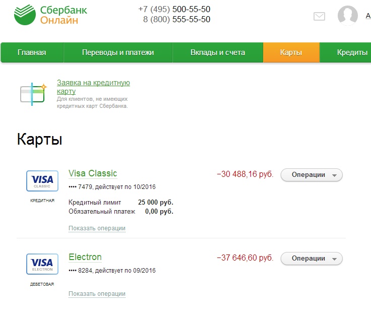Но в данном случае есть некоторое отличие. Во-первых, на балансе было недостаточно денег, и сумму сняли два раза. Точнее по два раза с каждой карточки! Я бы не поверил, если бы сам не увидел. Вот скриншот, который Сбербанк-онлайн выдал прямо при мне:
