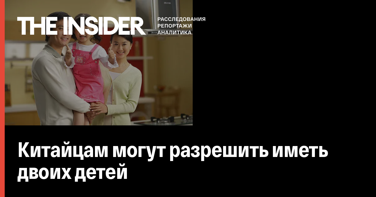 Власти Китая рассматривают вопрос о смягчении демографической политики страны, которая предписывает иметь не более одного ребенка в семье. Как сообщил премьер Госсовета КНР Ли Кэцян, которого цитирует «Русская служба Бибиси», сейчас правительство страны взвешивает все «за» и «против» этого решения. Если оно будет принято, китайским семьям будет позволено иметь двоих детей.