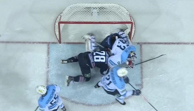 В матче плей-офф КХЛ вратарь избил въехавшего в него соперника