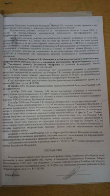 Так, не позднее 22.03.2014 года Романов А.В., нашел в телекоммуникационной сети Интернет статью под названием «Вот все-таки про протест в России», содержащую высказывание; «Просто я сейчас хочу призвать людей не тратить усилий на бесполезное участие в бестолковых акциях, тратить усилие на то, что за два года доказала свою полную не состоятельность! А привело к обратному результату. Абсолютной диктатуре Путина. И проблема сейчас одна, это Путин, точнее это жуткая власть, которую надо выгонять! И сейчас надо на это тратить усилия, а не на дурацкие соцопросы! Ребята, хватить торговать совестью и успокаивать себя участием в беззубых акциях. Не надо говорить, что я боролась как могла. Потому, что пока вы ждете, когда это тусовка переместиться в удобные депутатские кресла, умирают дети от закона Димы Яковлева. Начинается братоубийственная война с Украиной, сидят узники 6 мая и так далее. И в этом точно есть и ваша вина, потому что вы ничего не делайте. Единственный вариант сейчас победить Путина это Майдан! Надо на это направить усилия. Давайте займемся Майданом! Не надо участвовать в бестолковых выборах их просто нет! Зачем себе врать?! отложите свои политические взгляды, амбиции, просто придите и сделайте. Поверьте, большую часть в истории с Майдана за Россию сделали Украинцы, в том числе и ценой жизни героев! Нам в России просто надо собраться и выстоять всего неделю другую и они побегут! Поверьте!»