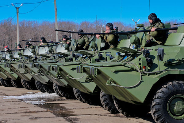 Так, 18 марта в боевую готовность было приведено соединение морской пехоты Черноморского флота, дислоцированное в населенном пункте Темрюк Краснодарского края. Как пояснили в Минобороны, «в районе выполнения учебно-боевых задач личный состав оборудует фортификационные сооружения, готовит военную технику и вооружение к выполнению учебных и контрольных стрельб». На сайте ведомства также уточняется, что личный состав отрабатывает задачи противодействия условным диверсионным группам и авиации условного противника.