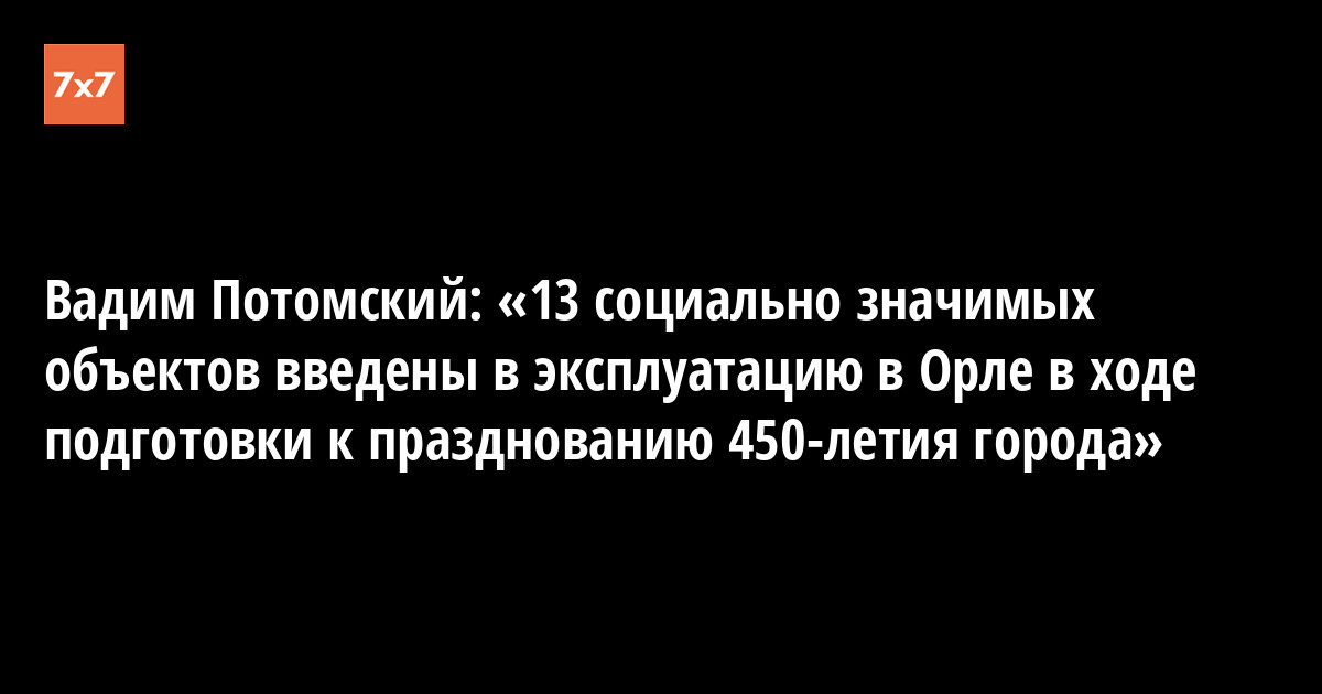 Вадим Потомский: «13 социально значимых объектов введены в эксплуатацию в Орле в ходе подготовки к празднованию 450-летия города»