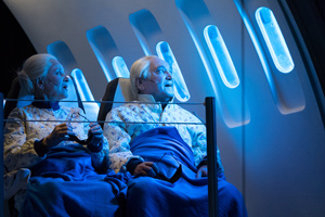 (В спектакле Бориса Юхананова эта метафора протянута наглядно: в видеоряде много космоса, а во втором спектакле на сцене появляется смысловой монстр — гибрид холодильника и ракеты, из которого позже вывалится чучело гигантской Чайки.)