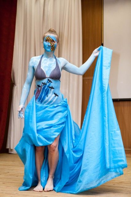 В Ижевском государственном техническом университете имени М.Т.Калашникова прошел конкурс боди-арта, посвященный Дню Победы. Участникам конкурса предложили нарисовать «виды и рода войск, действовавших во время Великой Отечественной войны, от кавалерии до летчиков и реактивной артиллерии».
