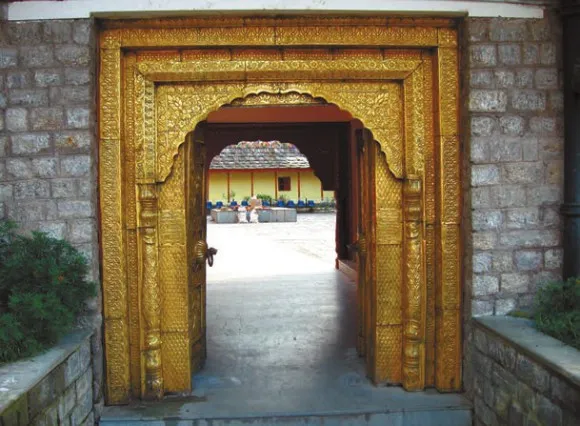 Проехав городок, наш транспорт остановился перед массивными воротами. За ними мы увидели удивительный мир, в котором нам предстояло немного пожить. В обширном дворе напротив ворот находился двухэтажный деревянный дворец, построенный для раджи в сентябре 1917 года. Сейчас это — отель для туристов и паломников, где мы и заночевали.