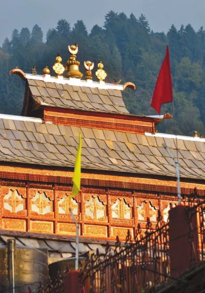 Проделав путь в 184 км от Шимлы, мы прибыли в Сарахан (Sarahan, 2128 м). Это местечко расположено на склоне горы в 7 км от Сатледжа. Согласно древним «Пуранам», здесь когда-то дочь местного правителя полюбила внука Кришны. Ближе к нашему времени в Сарахане находилась резиденция властителей княжества Башахр (Bashahr, Bushahr), которое просуществовало с 1412 по 1948 год. Главным божеством местных раджей была Бхимакали (местный вариант Кали), которой возвели индуистский храмовый комплекс (Bhimakali Temple). Специалисты относят его к наиболее изящным памятникам Химачал-Прадеша [2].
