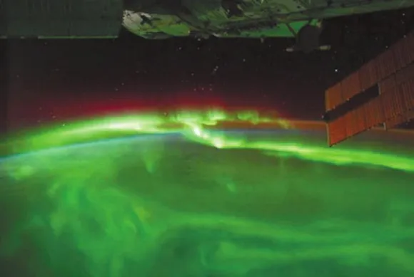 Что такое полярное сияние? Это свечение атомов атмосферы (азота и кислорода), возбуждаемых быстрыми электронами. Азот дает фиолетовую и зеленые линии (428 и 573 нм), кислород — зеленую и красную (558 и 630+636 нм). Обе кислородные линии метастабильные, то есть долго-живущие, поэтому они гасятся из-за столкновений при высокой плотности газа и могут высвечиваться только на больших высотах — 150–400 км.