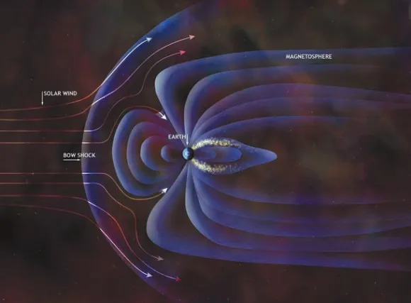 Магнитное поле в проводящей среде (а проводимость космической среды на большом масштабе огромна везде) прочно связано с веществом, из-за того что заряженные частицы (протоны и электроны плазмы), которых в космосе вообще, и в земной магнитосфере в особенности, много, могут двигаться только вдоль силовых линий. Поле с веществом становится упругой средой, передающей механические воздействия извне.