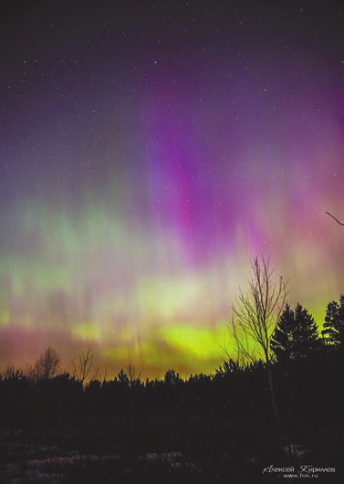 Плюс к этому в предполуночное время сияния обычно самые яркие, с четкими формами, «дискретные», а в послеполуночное — более размытые, «диффузные». Так что и со временем повезло. Атмосфера также была очень прозрачной, смога не было, что создавало хорошую видимость и достаточно темный фон. То есть и обычная, и маг-нитосферная погода оказались благоприятными для великолепного шоу.