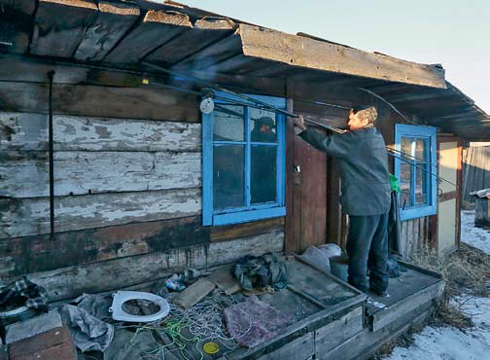 Когда-то здесь был колхоз, жило более 200 человек, но хозяйство разорилось, а люди разъехались или умерли. Федор Тремасов работал на зерносушилке, был даже почетным донором СССР, но это все в прошлом. Несколько лет назад он вышел на пенсию, овдовел, ехать ему некуда, вот и остался доживать свой век в Зеленоборске. Все самое необходимое покупает в соседней деревне, до которой 8 км пешком, да еще Енисей кормит. Весной и осенью, когда нет ледовой переправы или не работает паром, село отрезано от «большой земли» на несколько недель. Случись беда, рассчитывать можно только на катер МЧС на воздушной подушке, который есть в соседнем райцентре.