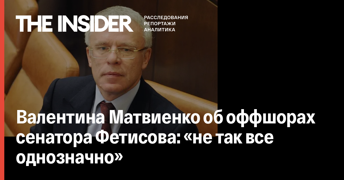 Спикер Совета федерации России Валентина Матвиенко заявила, что «не так все однозначно» с наличием у сенатора Вячеслава Фетисова зарегистрированных в оффшорах компаний.