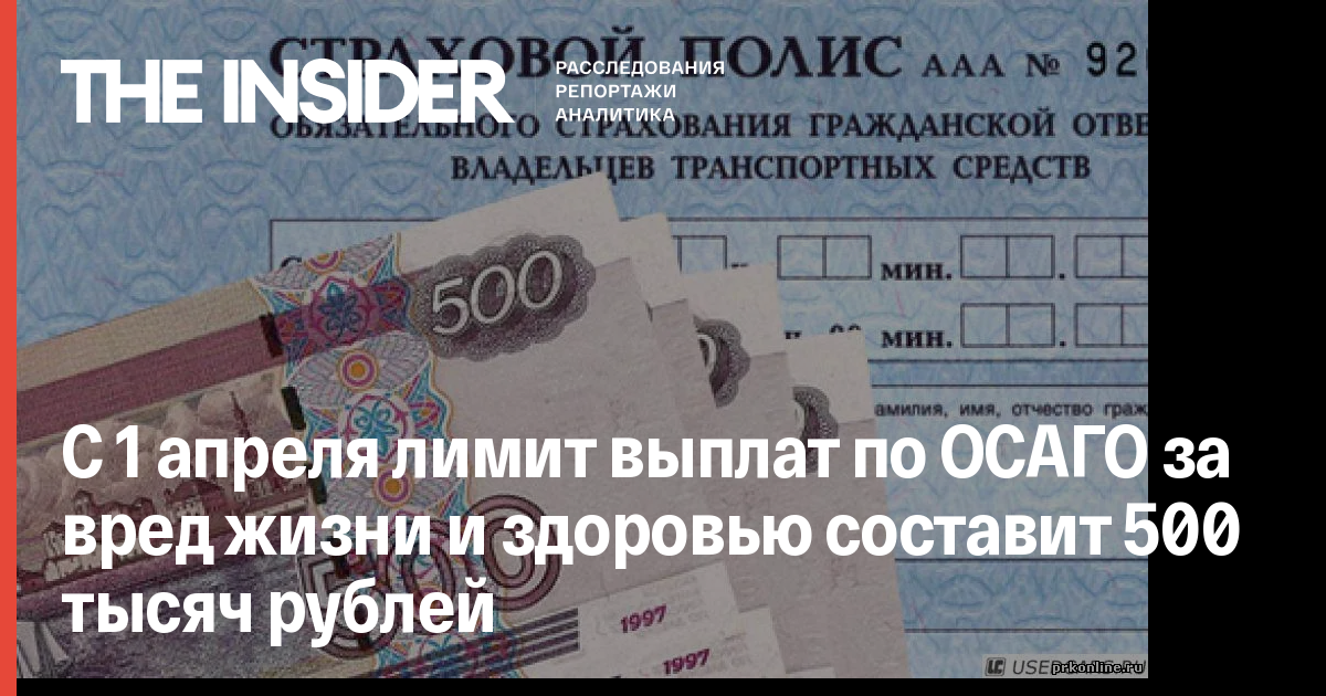 С 1 апреля лимит выплат по ОСАГО за вред жизни и здоровью составит 500 тысяч рублей