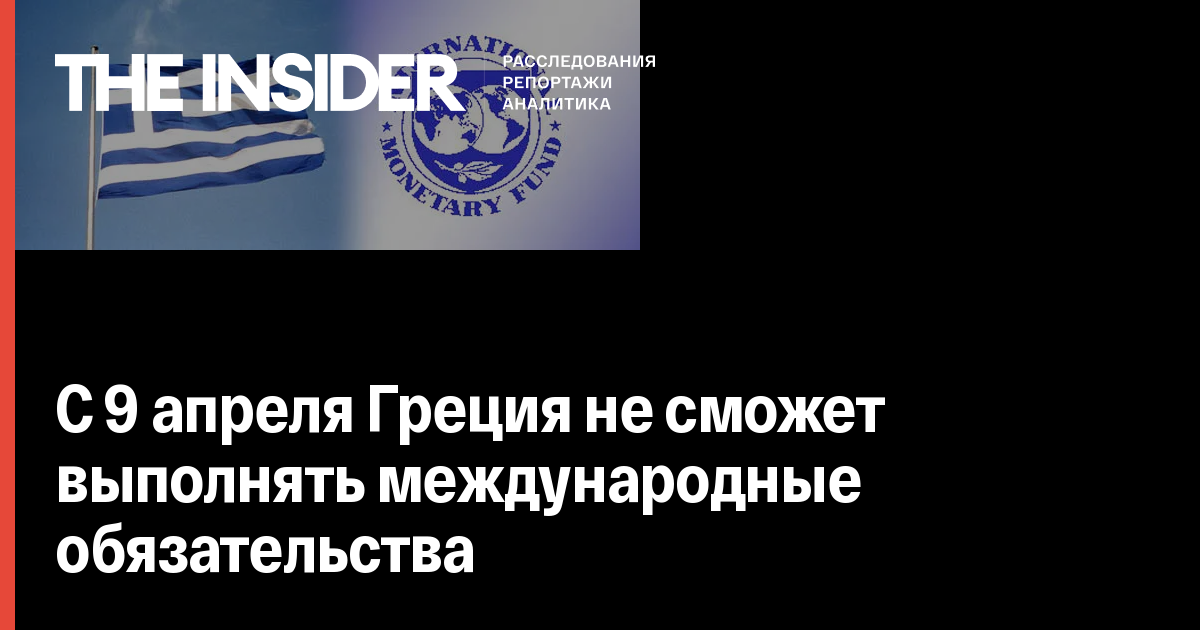 Греция объявила, что с 9 апреля не сможет выполнять долговые обязательства перед кредиторами. Об этом сообщает агентство Reuters со ссылкой на представителей ЕС. К указанной дате Греция должна вернуть МВФ 450 млн. евро.