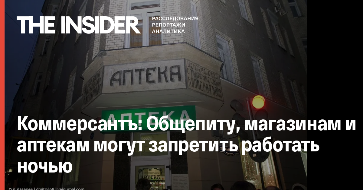 Коммерсантъ: Общепиту, магазинам и аптекам могут запретить работать ночью